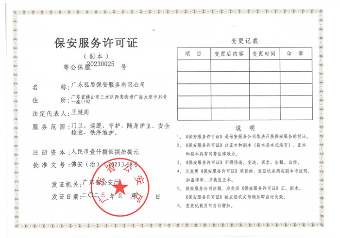 • 保安服務(wù)許可證副本