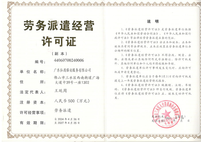 • 勞務(wù)派遣經(jīng)營(yíng)許可證