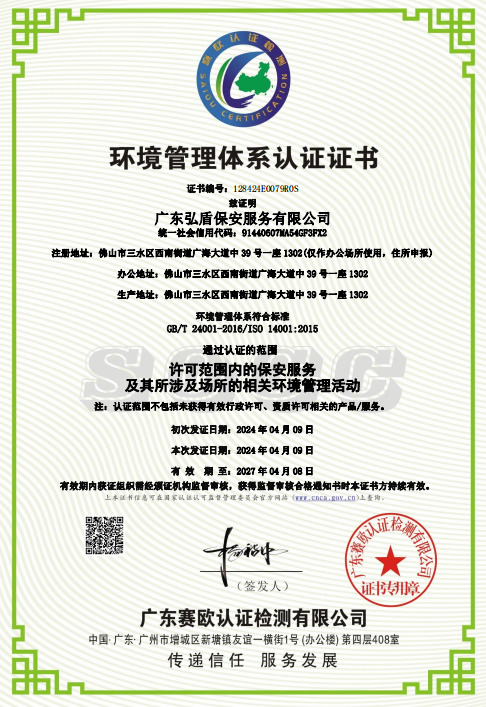 • 環(huán)境管理體系認(rèn)證證書
